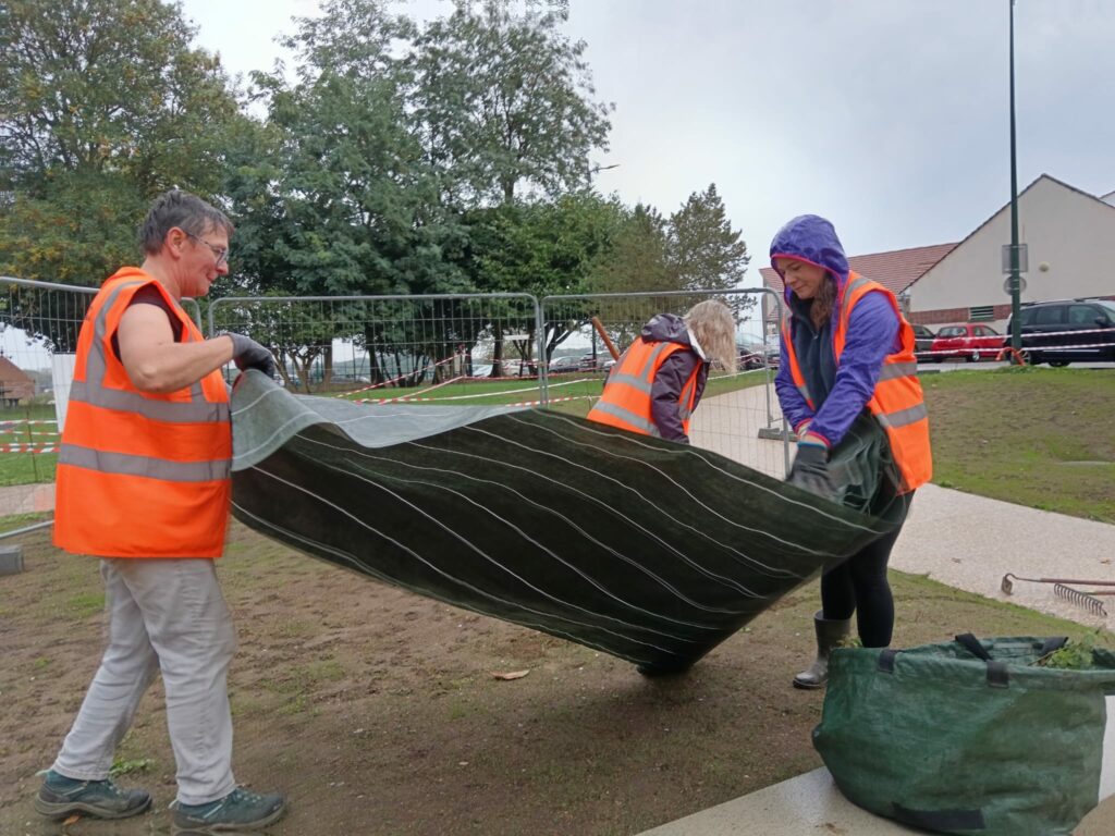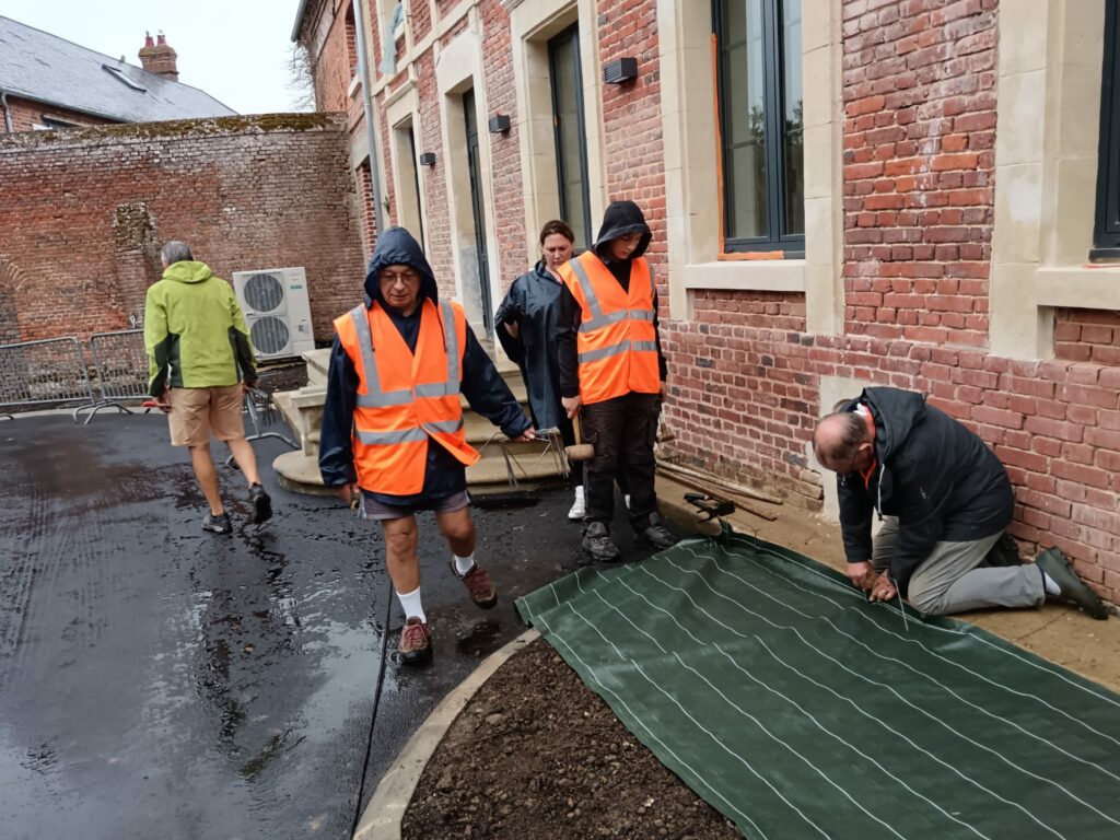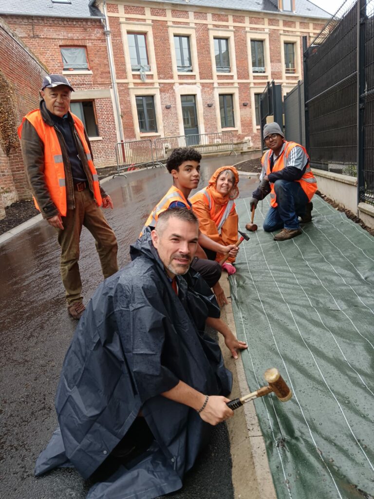 Une brigade XXL avec 27 bénévoles pour préparer les espaces verts de la mairie Chantepie sous la pluie, une fois n’est pas coutume !!!