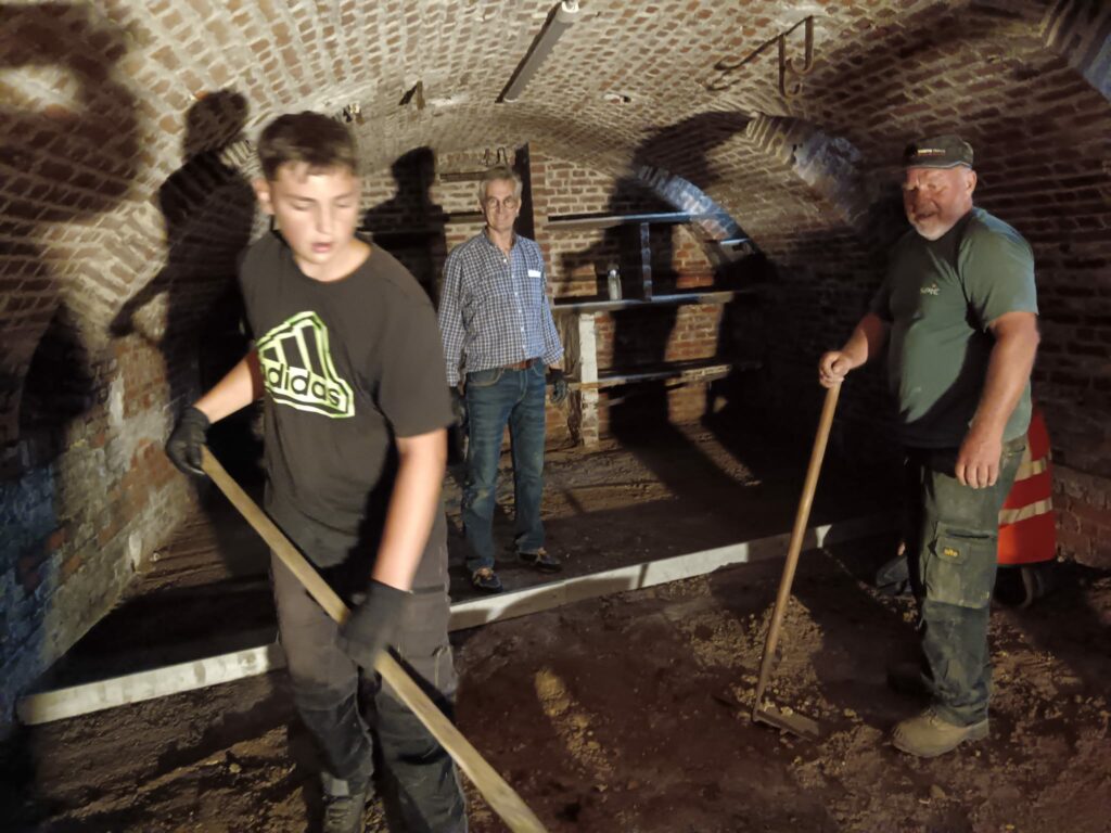 Nettoyage de la jolie cave voûtée :gros travail également. Et remise en place du Christ sur le calvaire de Crécy!!!