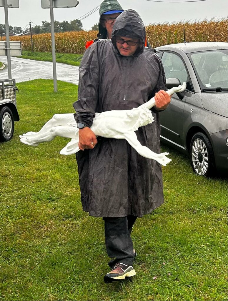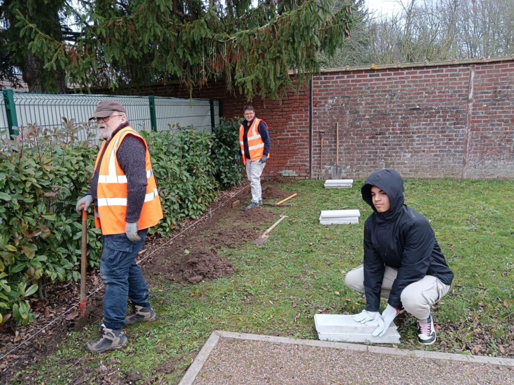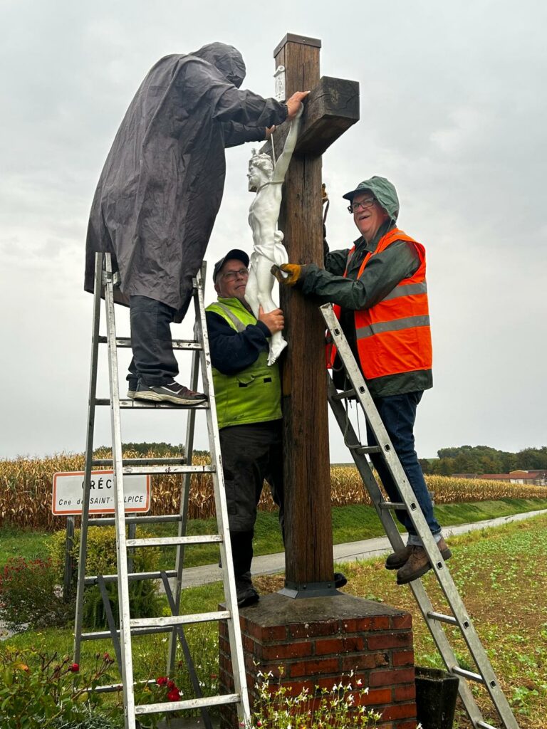 Certains ont nettoyé et taillé la haie de photinias tandis que d’autres déposaient la statue du calvaire de Crécy pour restauration et nettoyaient la croix en bois.