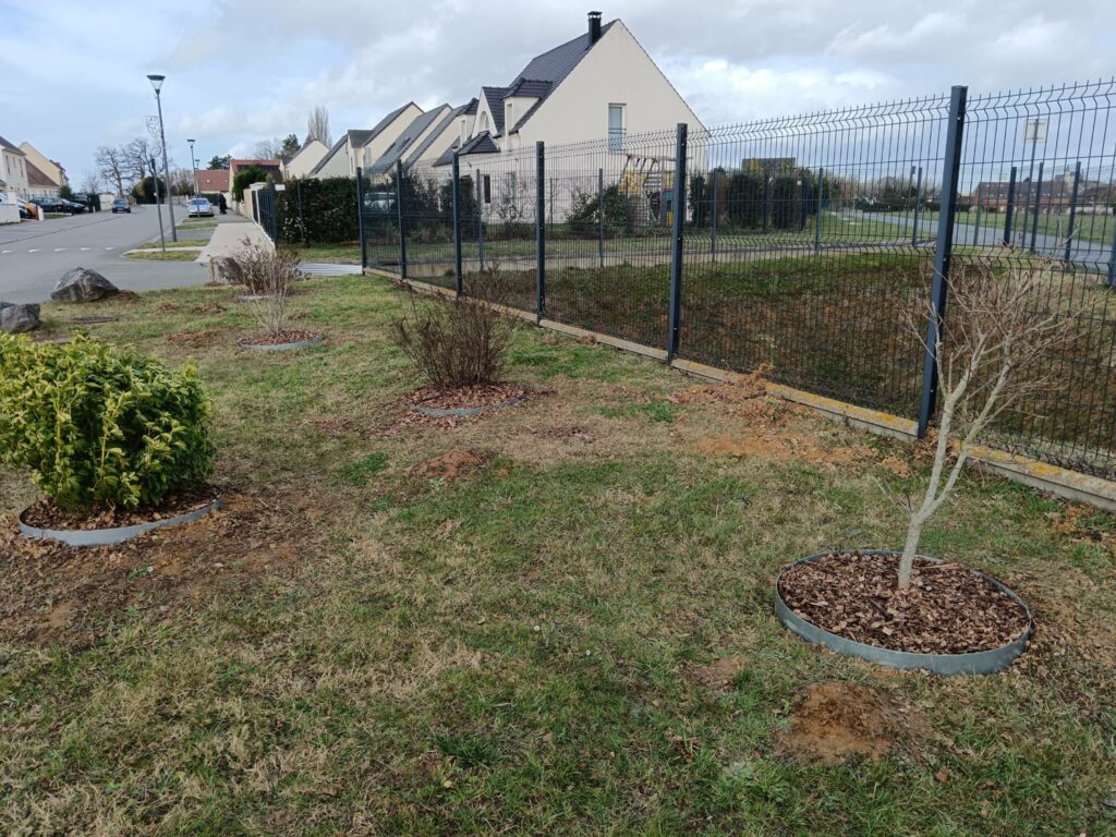 Devant la mairie de Chantepie : écorces et bandes de protection
